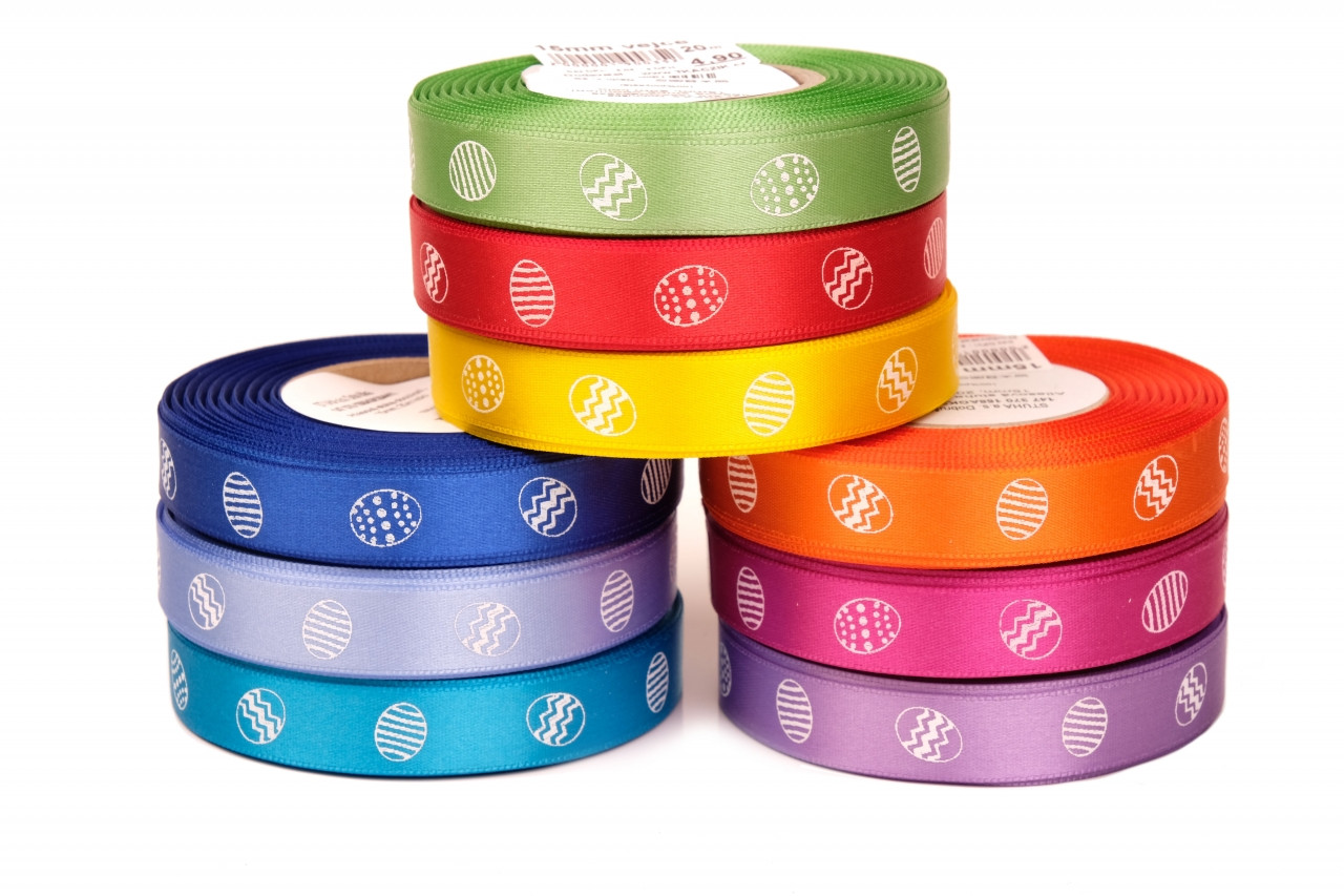 Stuha atlasová oboulící šíře 15mm potisk vejce