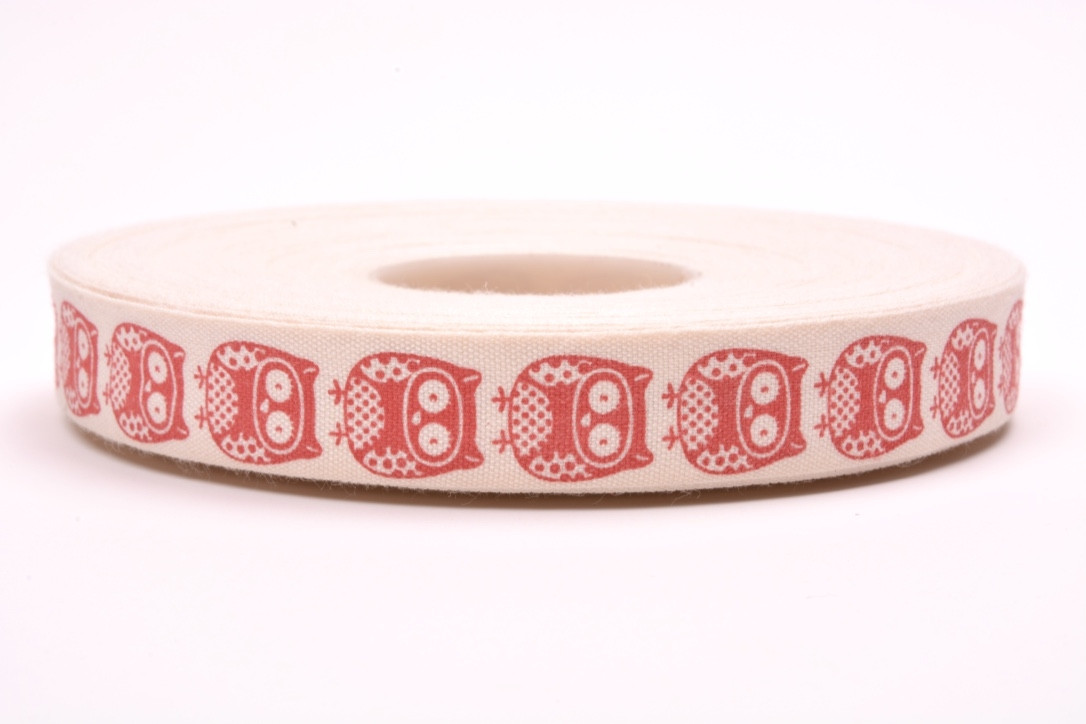 Stuha bavlněná 978 tisk sova šíře 15mm