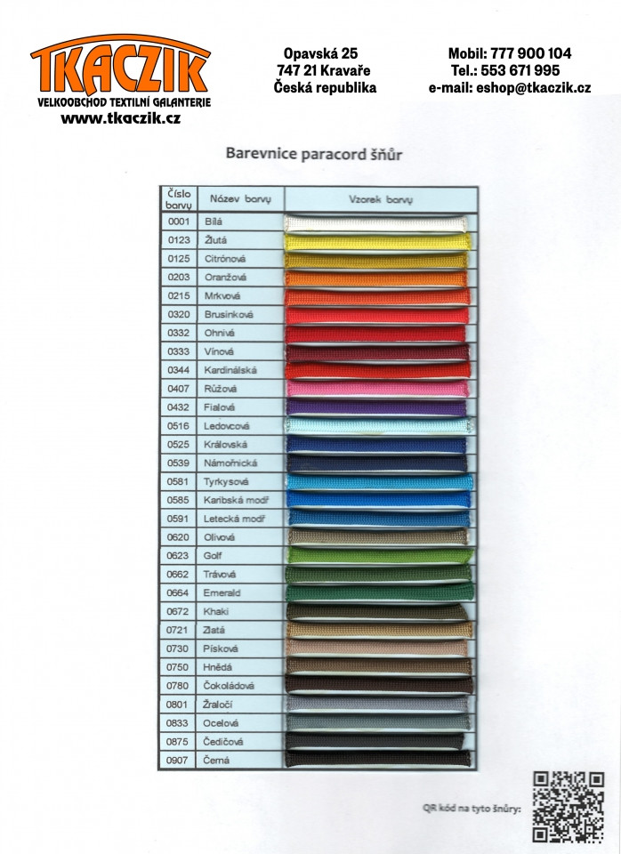 Paracord je 4 mm silné multifunkční lanko vyrobené z polyamidových vláken. Nosnost lanka je až 250 kg. Lanko můžete využít na svázování, uchycení nebo přivázání. Dále se také využívá k výrobě nárámků, řetízků, přívěšků, obojků, vodítek, opasků, tkaniček atd. Alternativní názvy: padáková šnůra, padákovka, paracord