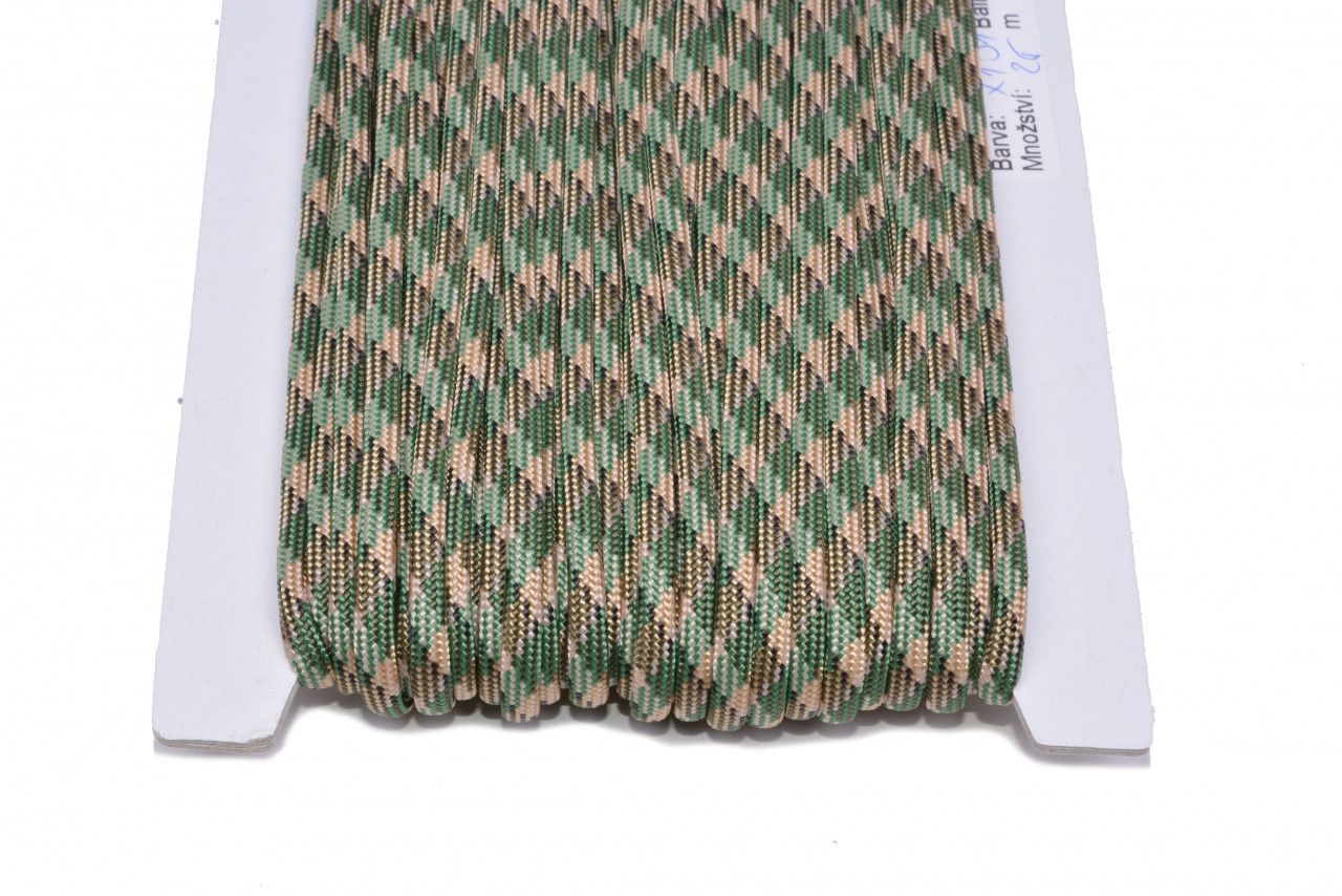 Vysoce kvalitní a pevná, přitom měkká a poddajná šňůra s výplní dle normy armády USA. Použitelná např. pro "náramky přežití", vodítka nebo obojky pro psy, klíčenky či přívěsky. Vetkané reflexní proužky. Nosnost až 270 kg