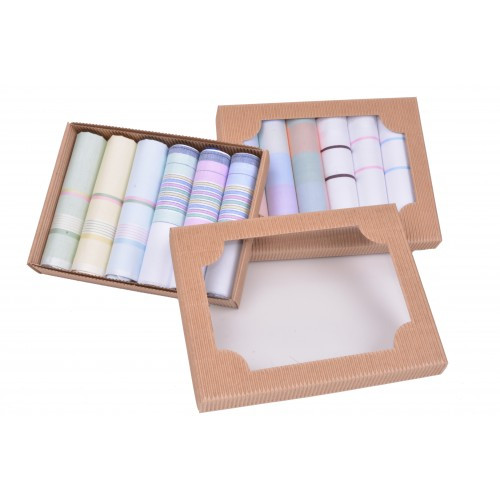 Dárkové balení v papírové krabičce. Sada obsahuje 6ks bavlněných kapesníků