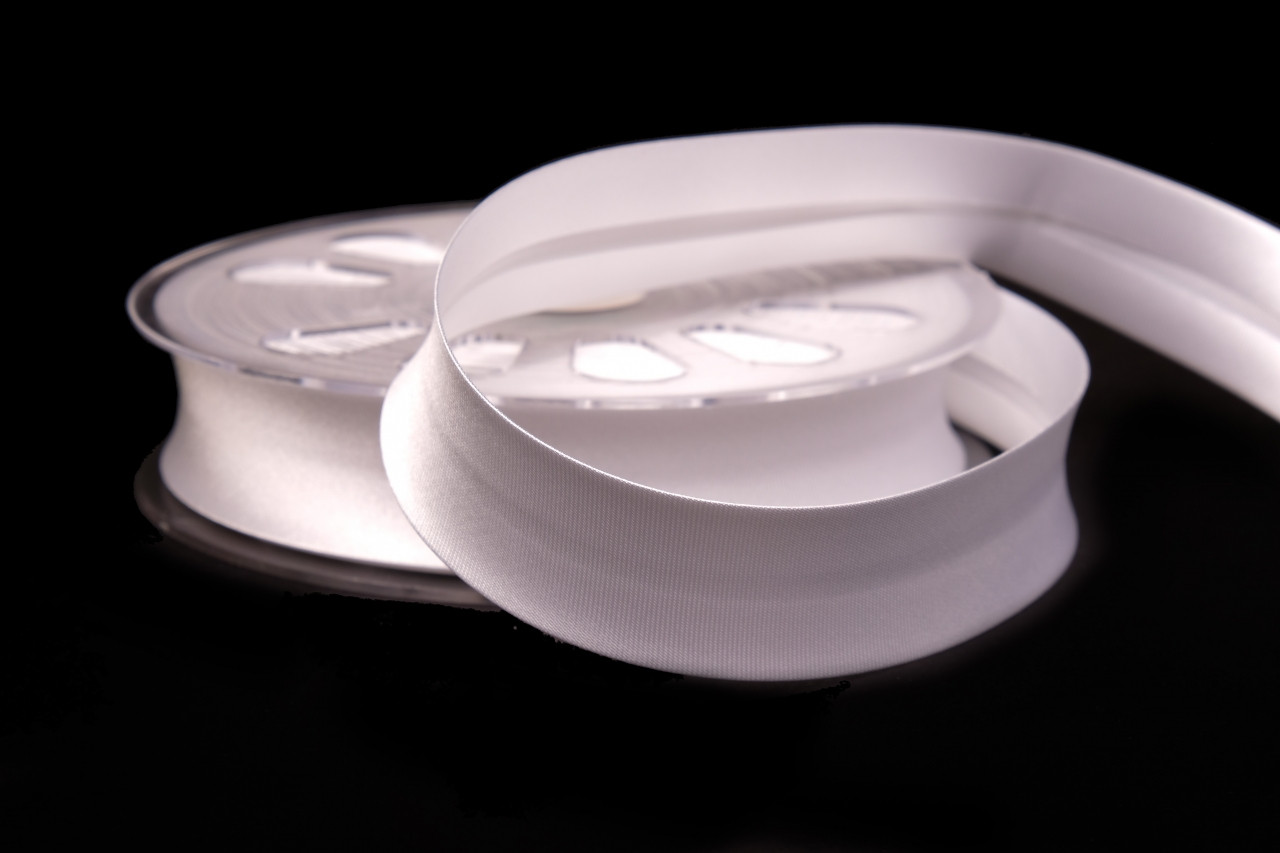Šikmý proužek atlasový nebo taky saténový je zakládaný do středu, rovnoměrně z obou stran. Je vhodný k olemování lehké dámské konfekce, jemného bytového textilu, záclon, závěsů atd. Alternativní název: šikmý proužek, šikmá stuha zakládaná doprostřed, ozdobná lemovka, ozdobná lemovka lesklá.