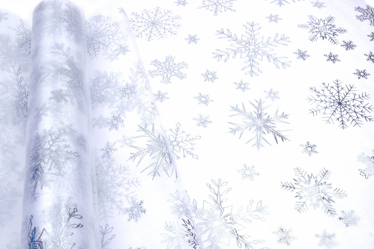Organza neobšitá vzor 708 vločky šíře 39cm návin 8m