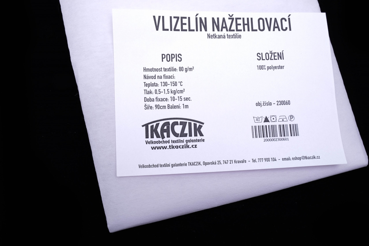 Vlizelín nažehlovací 80g/m rozměr 100x90cm