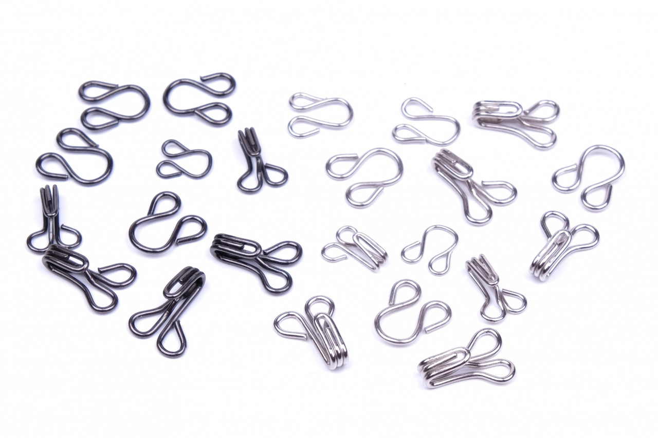 Tradiční háček a očko, vhodné pro oděvy. V balení mix velikostí, 144ks.