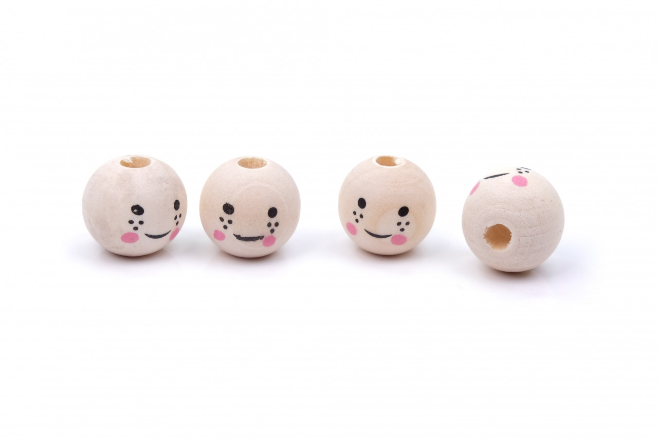 Korálky dřevěné s obličejem 21 vel. 16mm nelakované