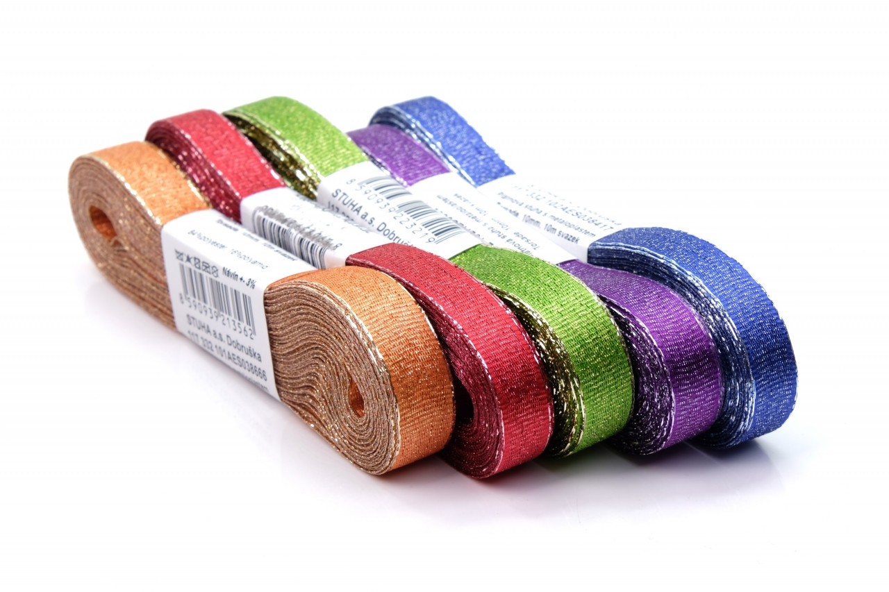Stuha torsade lurexová šíře 10mm svazek 10m MIX
