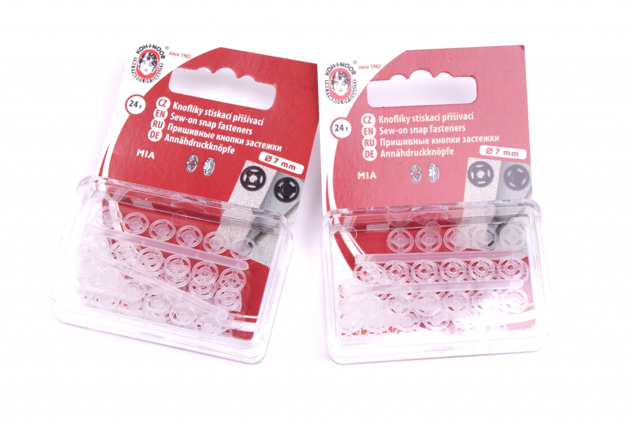 Stiskací knoflíky MIA (1/2) 7mm karta 24ks čirá