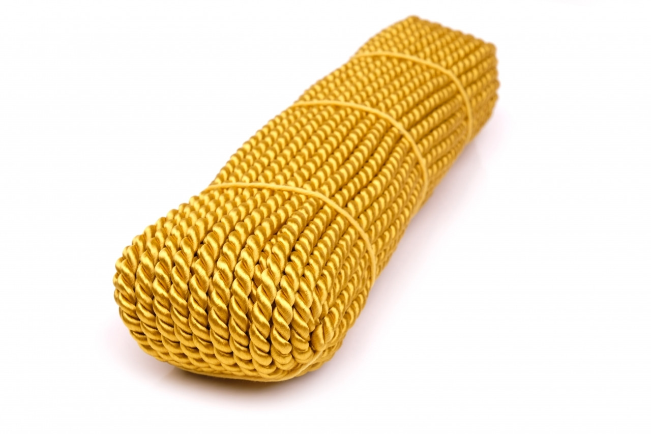 Kroucená šnůra je pevná a má lesklý povrch. Šíře šnůry je 5mm. Lze využít jako dekorace, v textilní galanterii nebo také na originální zabalení dárku.