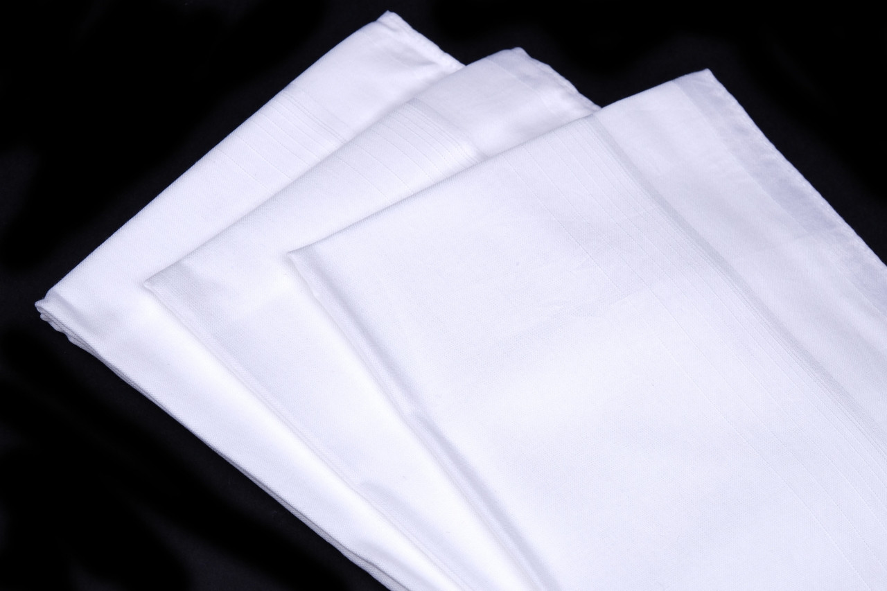 Elegantní bílý kapesník je vyroben v České republice. Velikost kapesníků je 40x40cm, ze 100% bavlny.