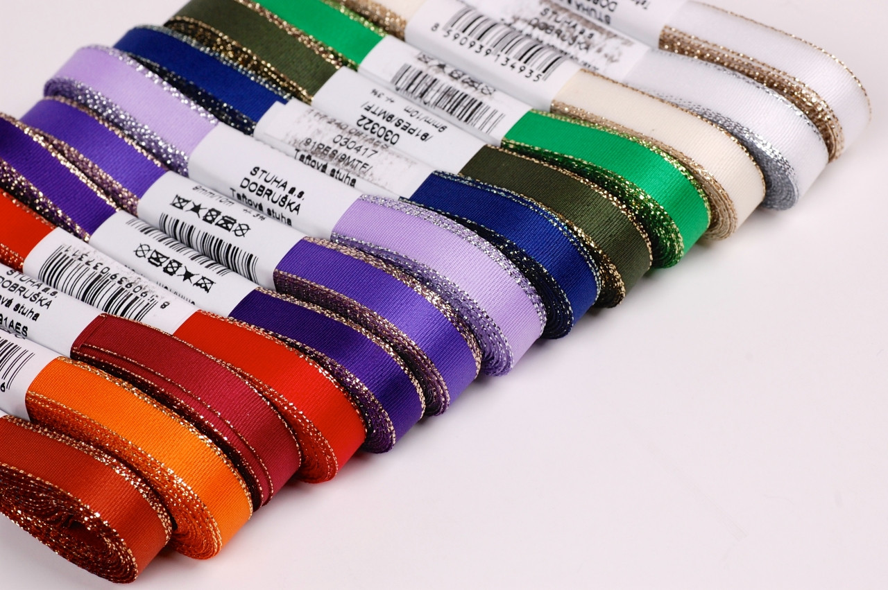 Stuha taftová s rexorovým okrajem vhodné ke svatebním příležitostem jak k dekoraci na balíčky tak o ozdobě. Alternativní název: stuha s rexorem, stuha svatební, stuha s lurexem, adjustačka, mašle, STUHA.