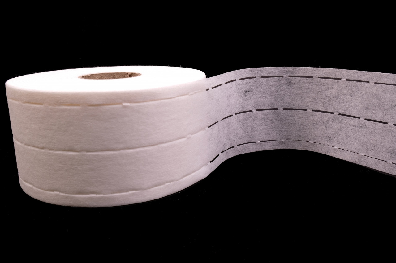 Perfo pásky se používá ke zpevnění pásků u sukní a kalhot. Dírky slouží jako vodítko, přes ně se pásek všívá. Hmotnost 45g/m2.