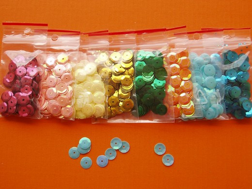 velikost 8mm.prolamované, baleno v sáčku po 3g. Flitry slouží k ozdobě různých oděvních doplňků nebo oblečení.