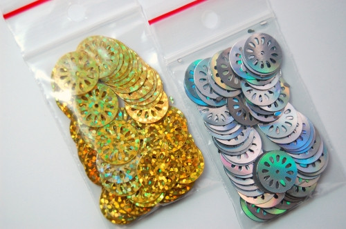 velikost 14mm, baleno v sáčku po 3g. Flitry slouží k ozdobě různých oděvních doplňků nebo oblečení.