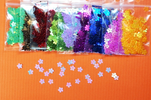 velikost 6mm, baleno v sáčku po 3g. Flitry slouží k ozdobě různých oděvních doplňků nebo oblečení.