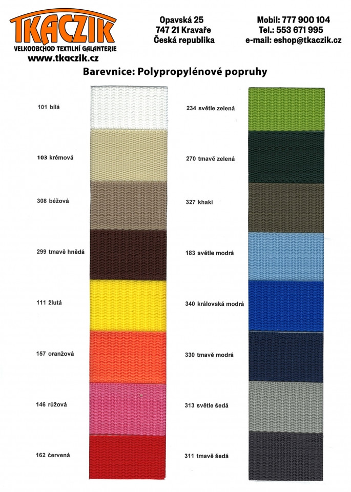 Popruhy jsou v různých šířkách a můžete je použít na batohy, tašky, obojky pro psy i k lemování textilních výrobků ,čalounění nábytku. Používají se i k uvazování stromů.