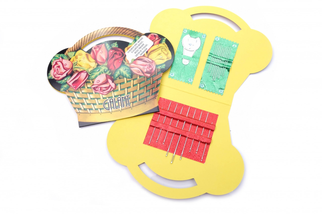 V košíčku se nachází 9 jehel od velikosti 42mm do velikosti 50mm a 12ks jehel od velikosti 30mm do 40mm a jeden navlékač nití.