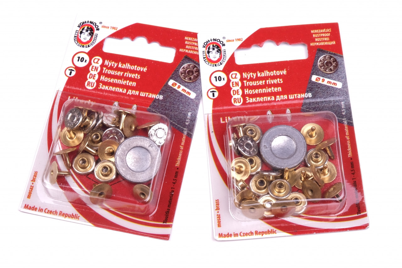 Nýtek se používá jako ozdoba do ryflí a kalhot. Nýtování se provádí ručním lisem. Velikost nýtu je 9,4mm.